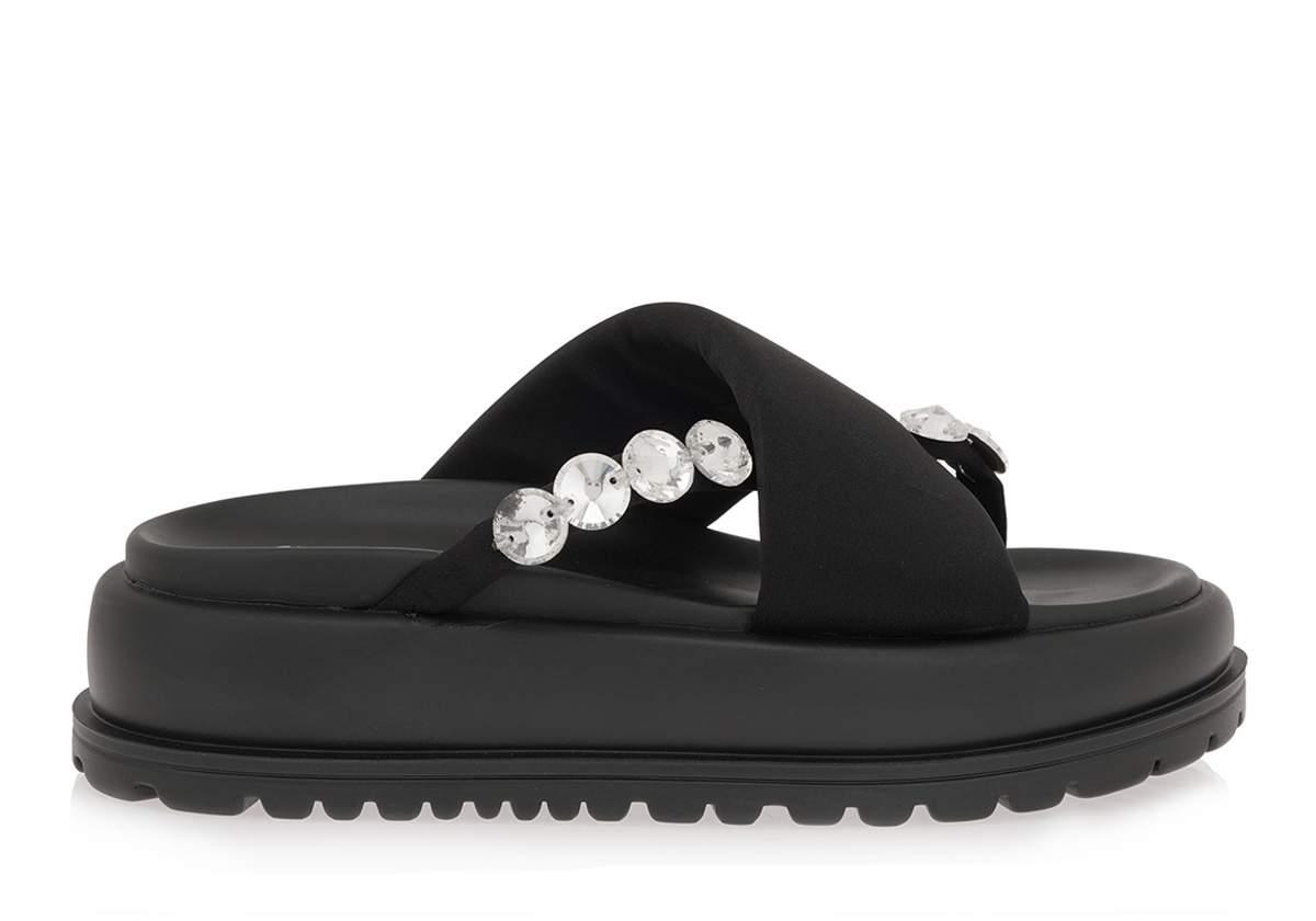 FLATFORMS από τη συλλογή της εταιρίας EXE της σεζόν Άνοιξη – Καλοκαίρι 2026. Σύνθεση : Υφασμα με τακούνι ΜΕΣΑΙΟ – 5,5 cm